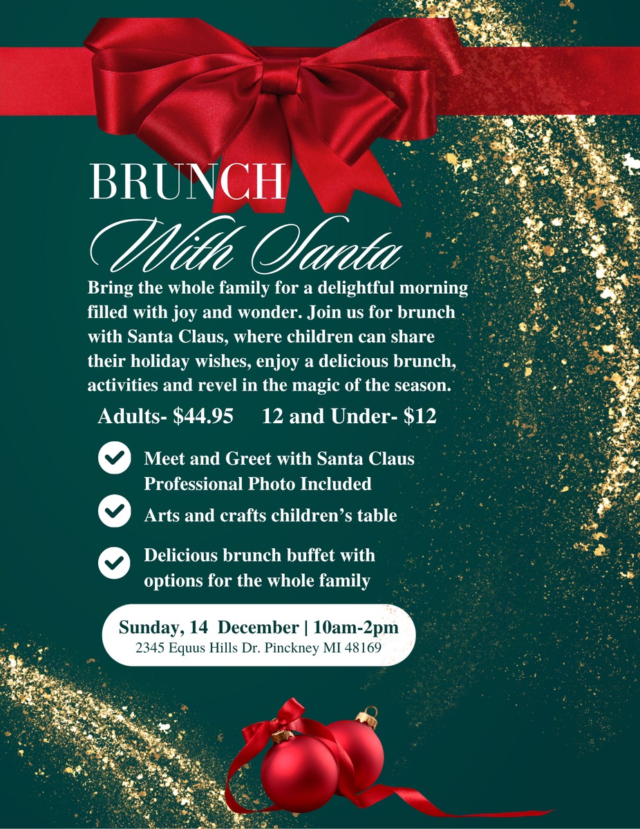 🎅 Meet & Greet with Santa Claus ✂️ Kids’ Arts & Crafts Table 🥞 Delicious Brunch Buffet with options for the whole family ❄️ Plenty of photo moments & holiday vibesWhen to arrive: Doors open at 10:00 AM and the buffet runs until 2:00 PM.